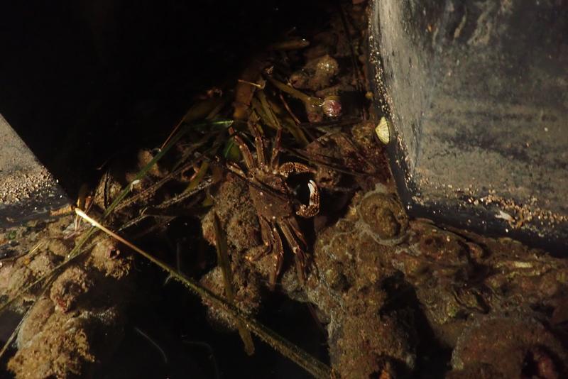 A crab spotted at night at the boat launching facility near Bridge Motors.