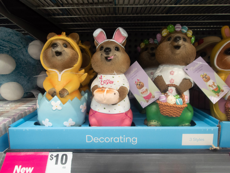 Easter quokkas at Woolworths.