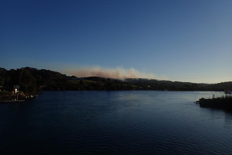 Smoke from a planned burn near Rose Bay, photographed from Bermagui Bridge.