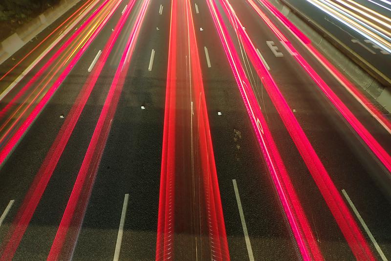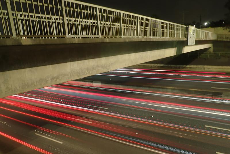 Live composite photos of the M2 CityLink freeway seen from the Brentwood Avenue overpass, Melbourne.