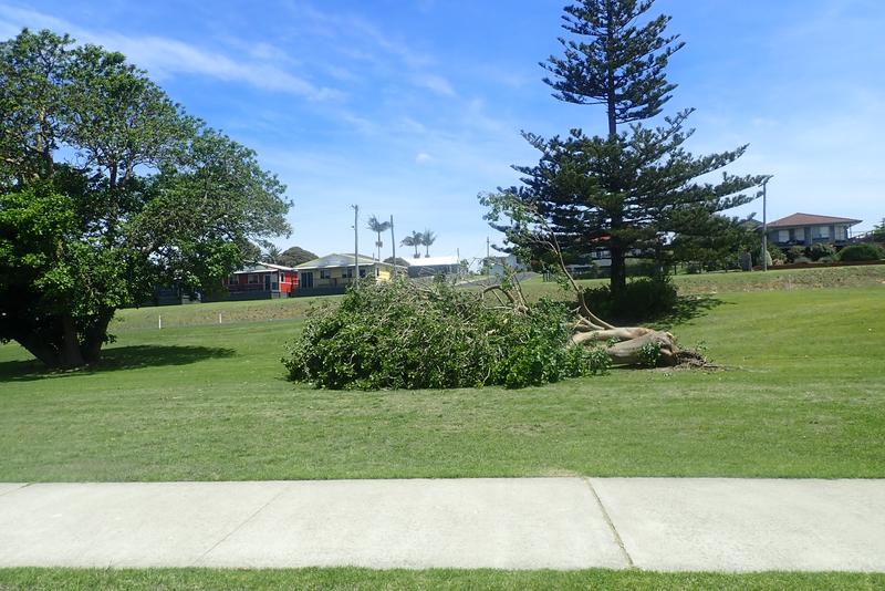 A fallen tree after a windstorm.